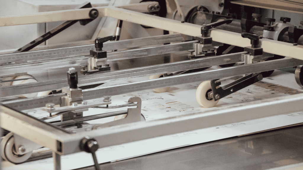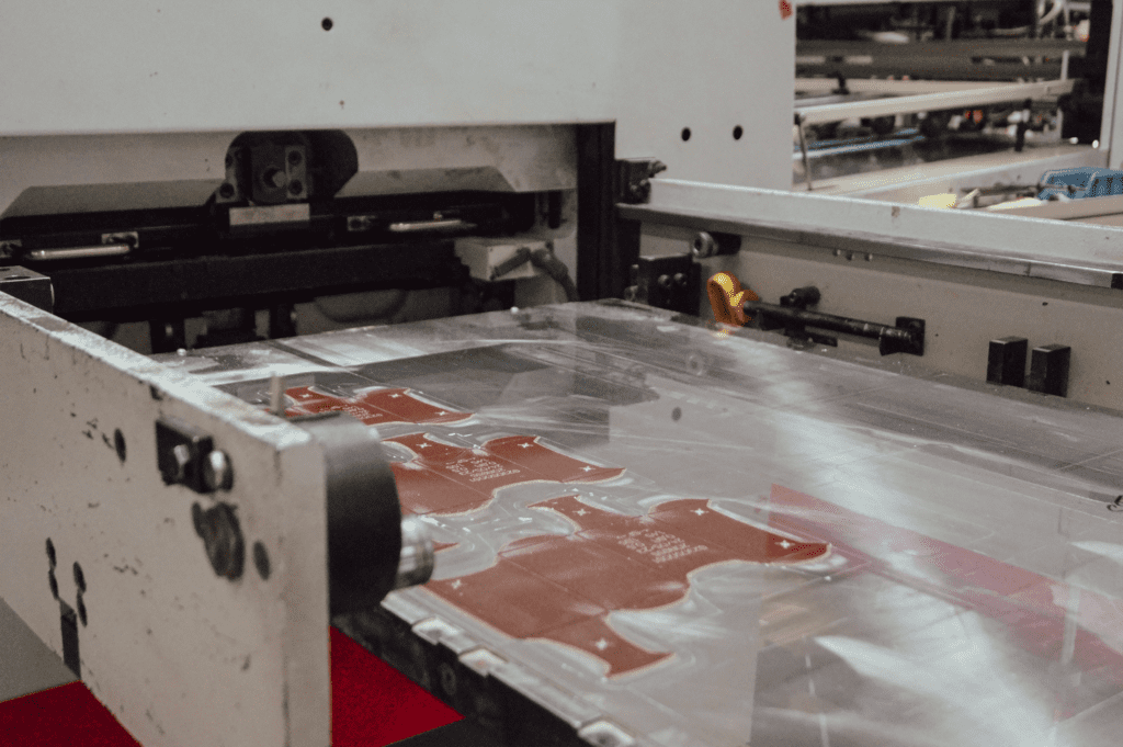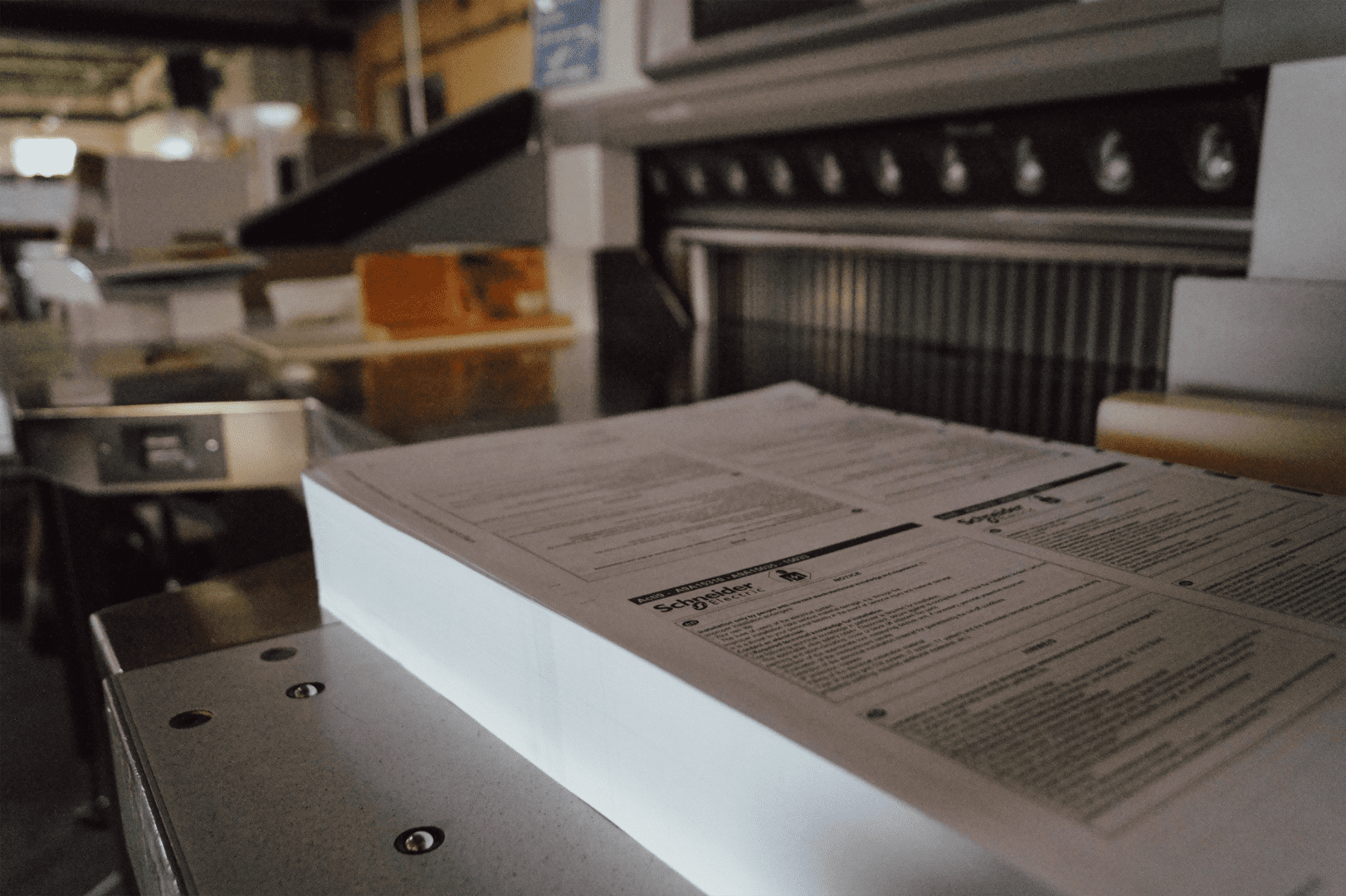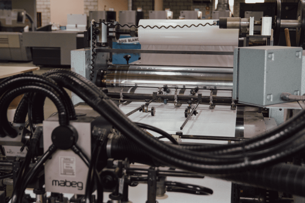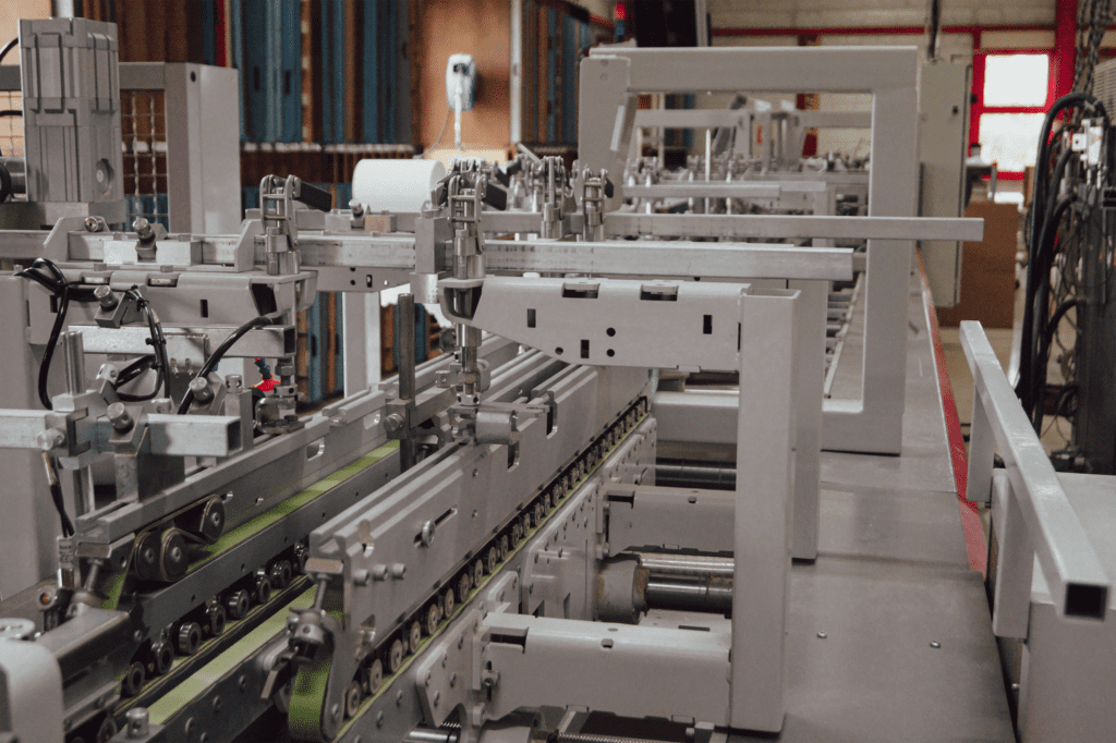 Grâce à la technologie BOBST, nous réalisons des découpes 72 x 102 cm et utilisons une plieuse-colleuse équipée de lecture optique colorimétrique pour tout mettre en boîte ! La réalisation d’étuis (rainage et découpe BOBST, jusqu’à 2 mm d’épaisseur, 7 000 feuilles à l’heure, décorticage automatique des chutes, pliage-collage, fond semi-automatique ou automatique, jusqu’à 100 000 étuis à l’heure) et celle de notices (du 45 g à 100 g, jusqu’à 12 plis et environ 28 mm de largeur, 5 plieuses) font entièrement partie de notre activité.